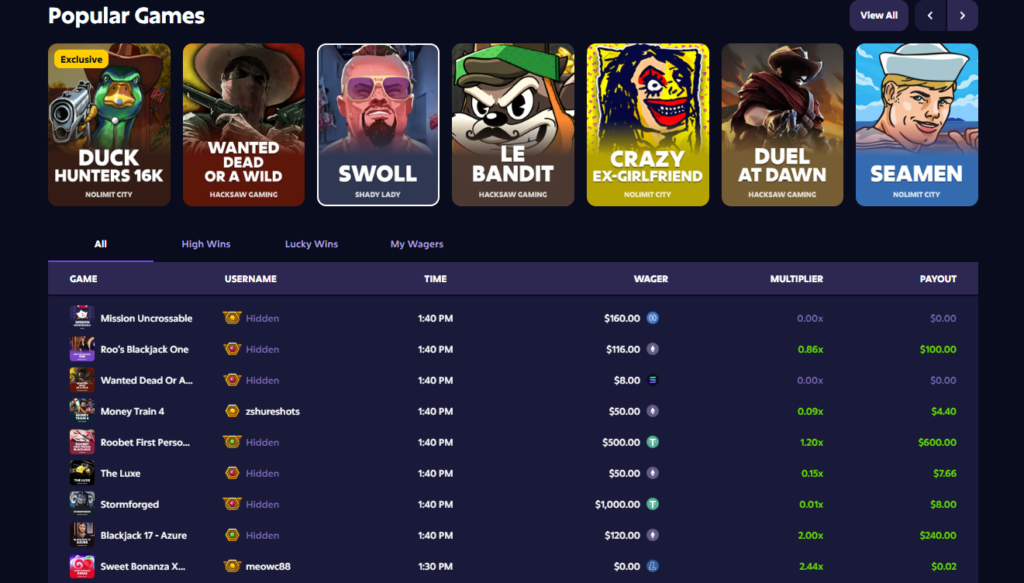 From hands-on use, Originals are fast, transparent, and easy to track. Rounds settle instantly, balances update in real time, and it’s clear how wagers count toward rewards.