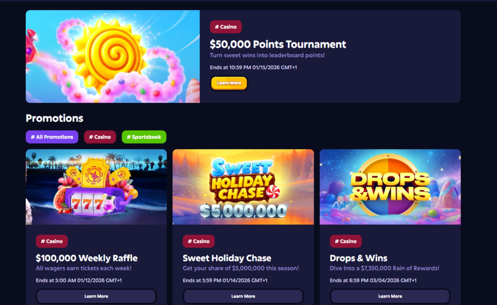 Examples include holiday-themed rewards, esports betting promos, and casino events with shared prize pools or boosted rewards. These offers are time-bound and often focus on participation rather than high wagering.